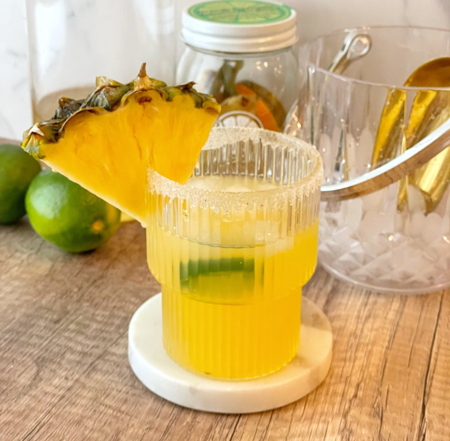 1. Strain your infused Orange Pineapple Jalapeno Margarita kit and set aside