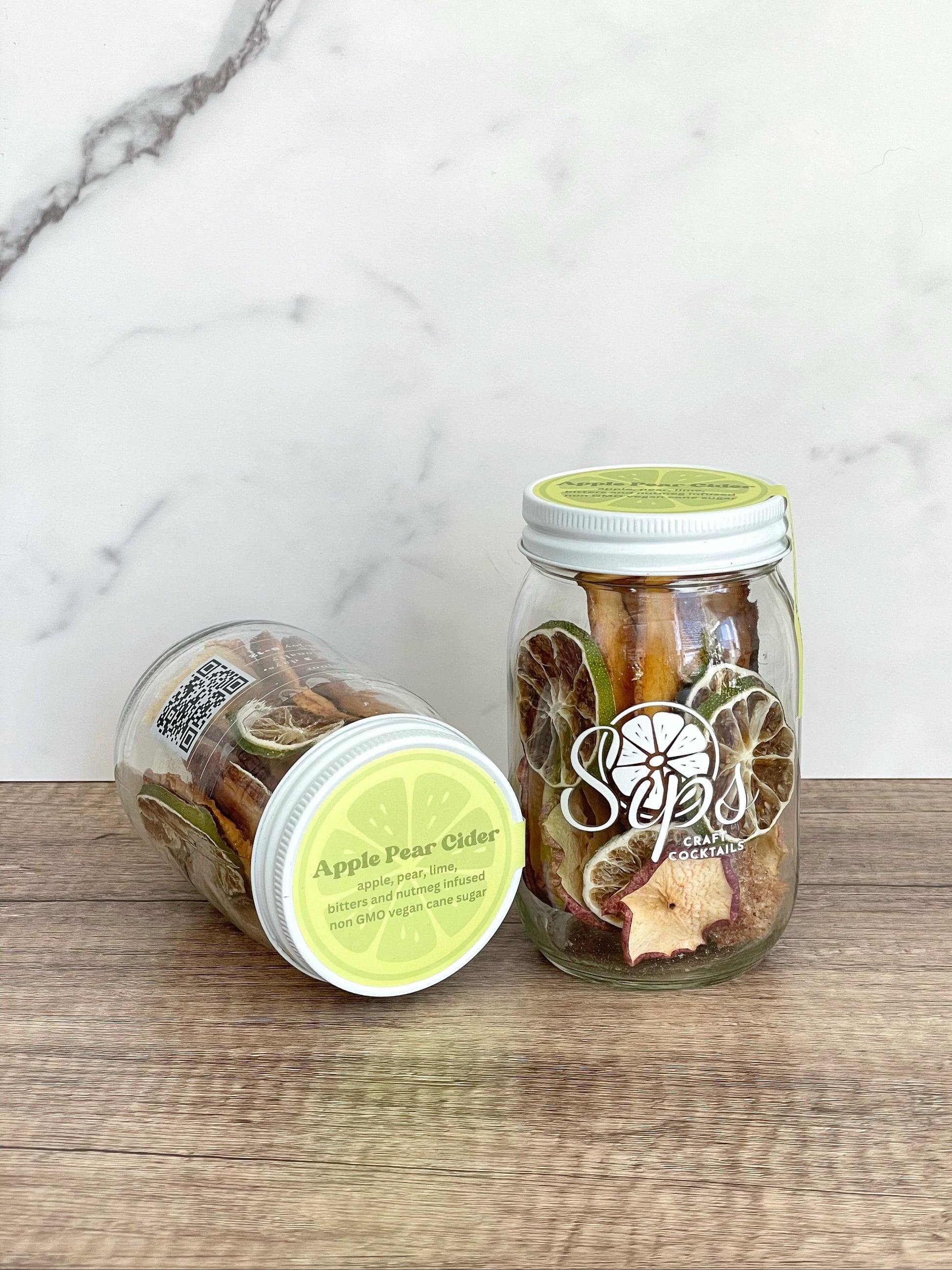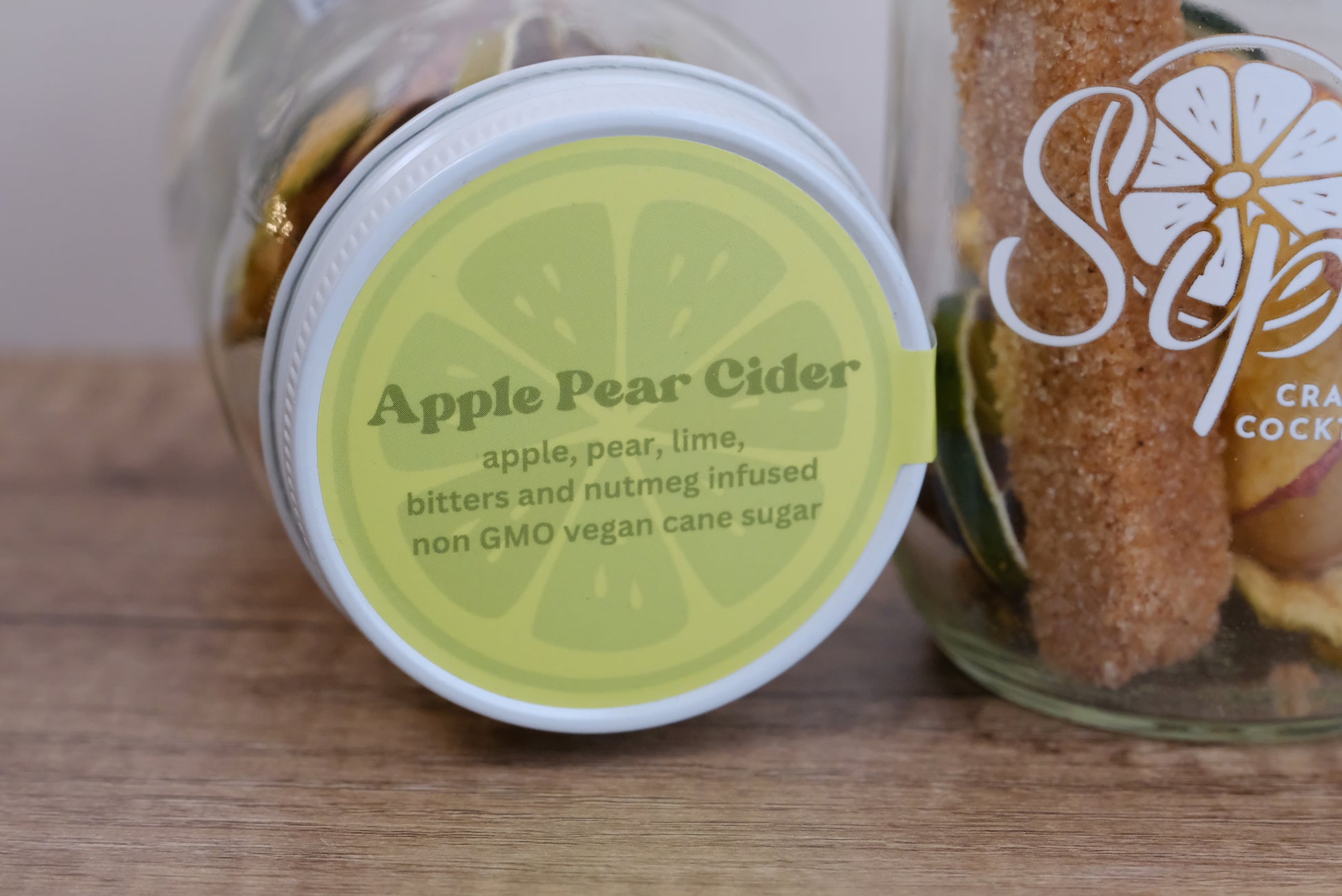 Ingredients: Apple, Pear, Lime, bitters and nutmeg infused non GMO vegan cane sugar