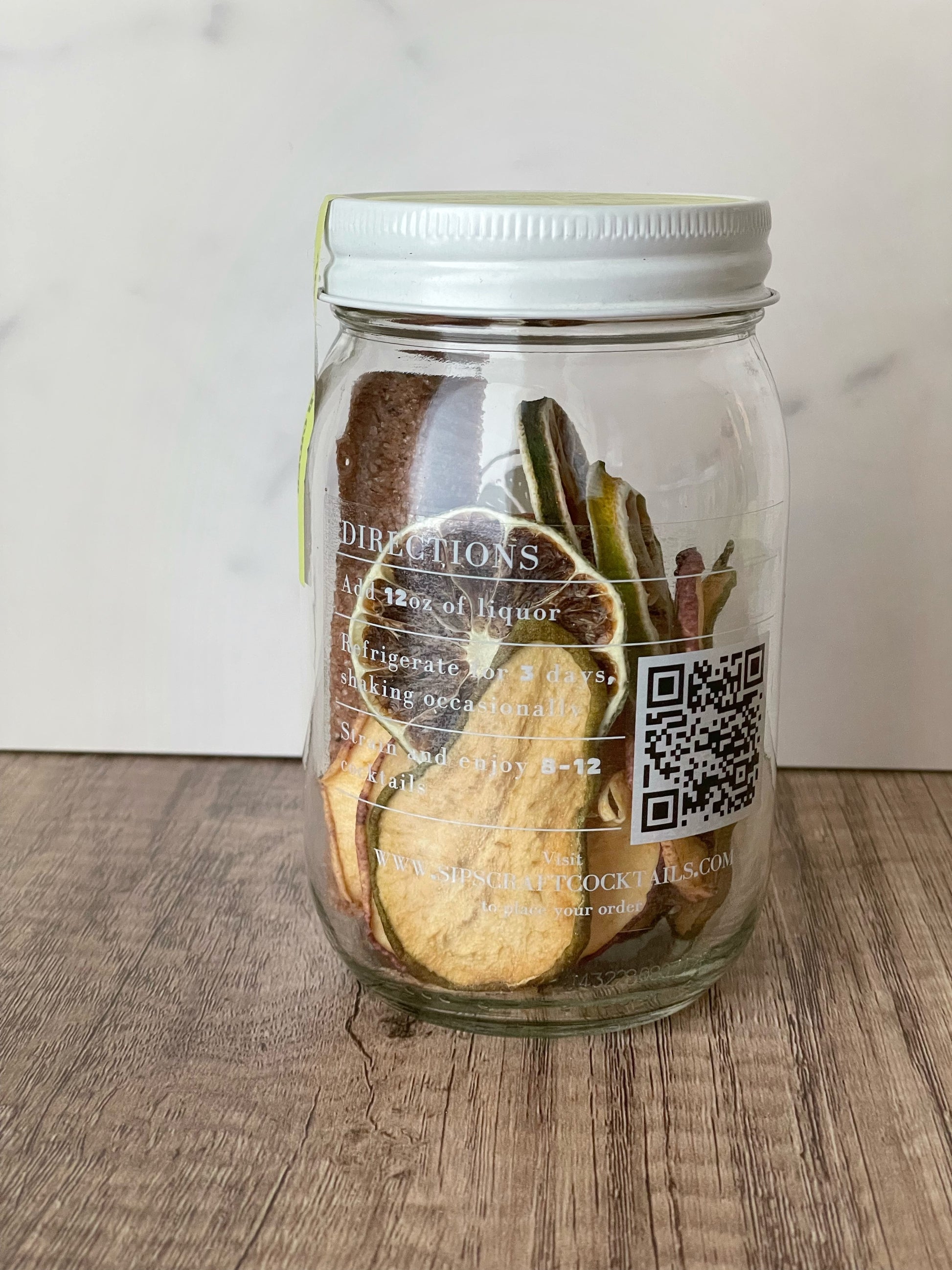 Simply add 12 oz of liquor, refrigerate for 3 days shaking occasionally, strain and enjoy making 8-12 cocktails.
