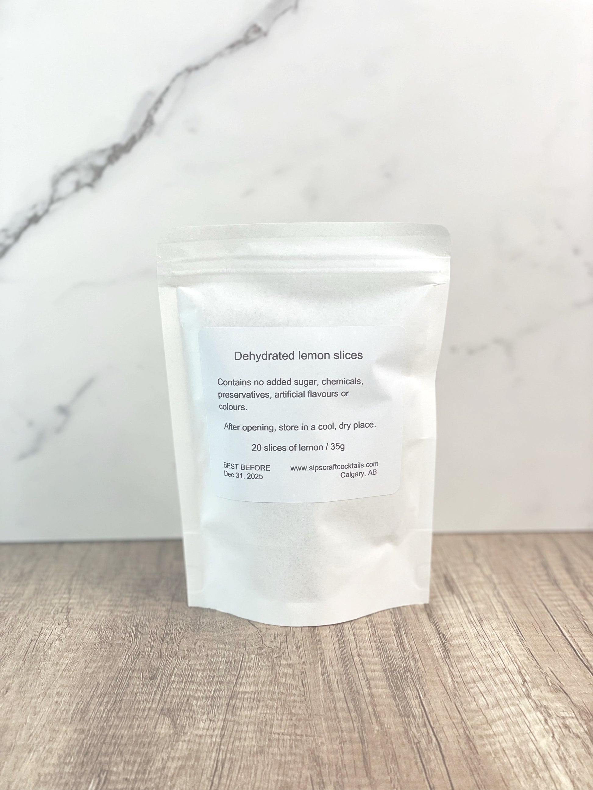 Garnish your cocktails with a dehydrated slice of lemon. Includes 20 dehydrated lemon slices.